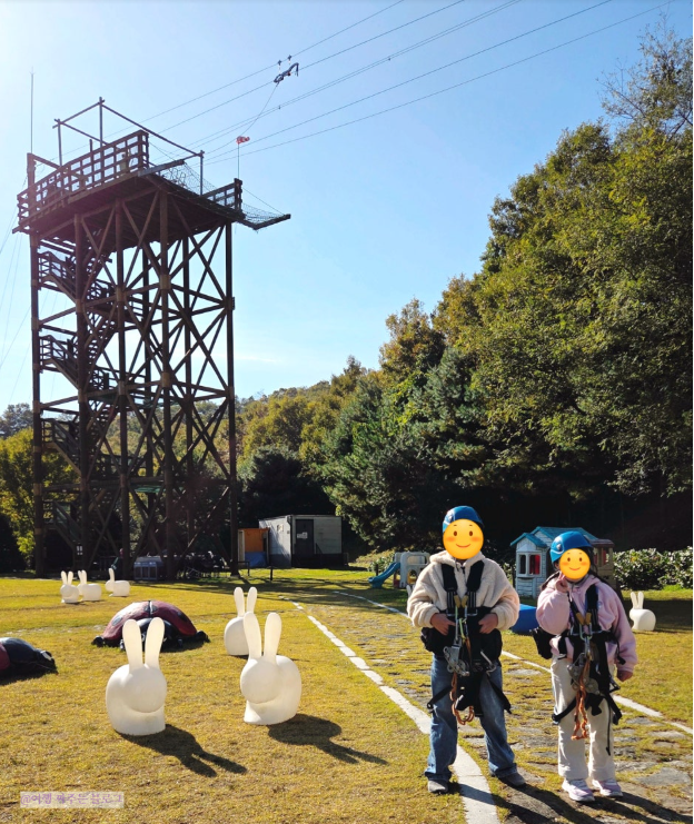 내려 갔더니 아이들은 아주 집라인 타고 아주 신이 나서 와 있더라고요.