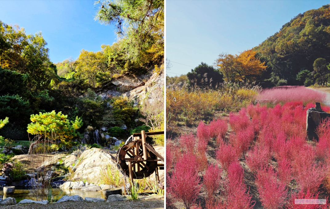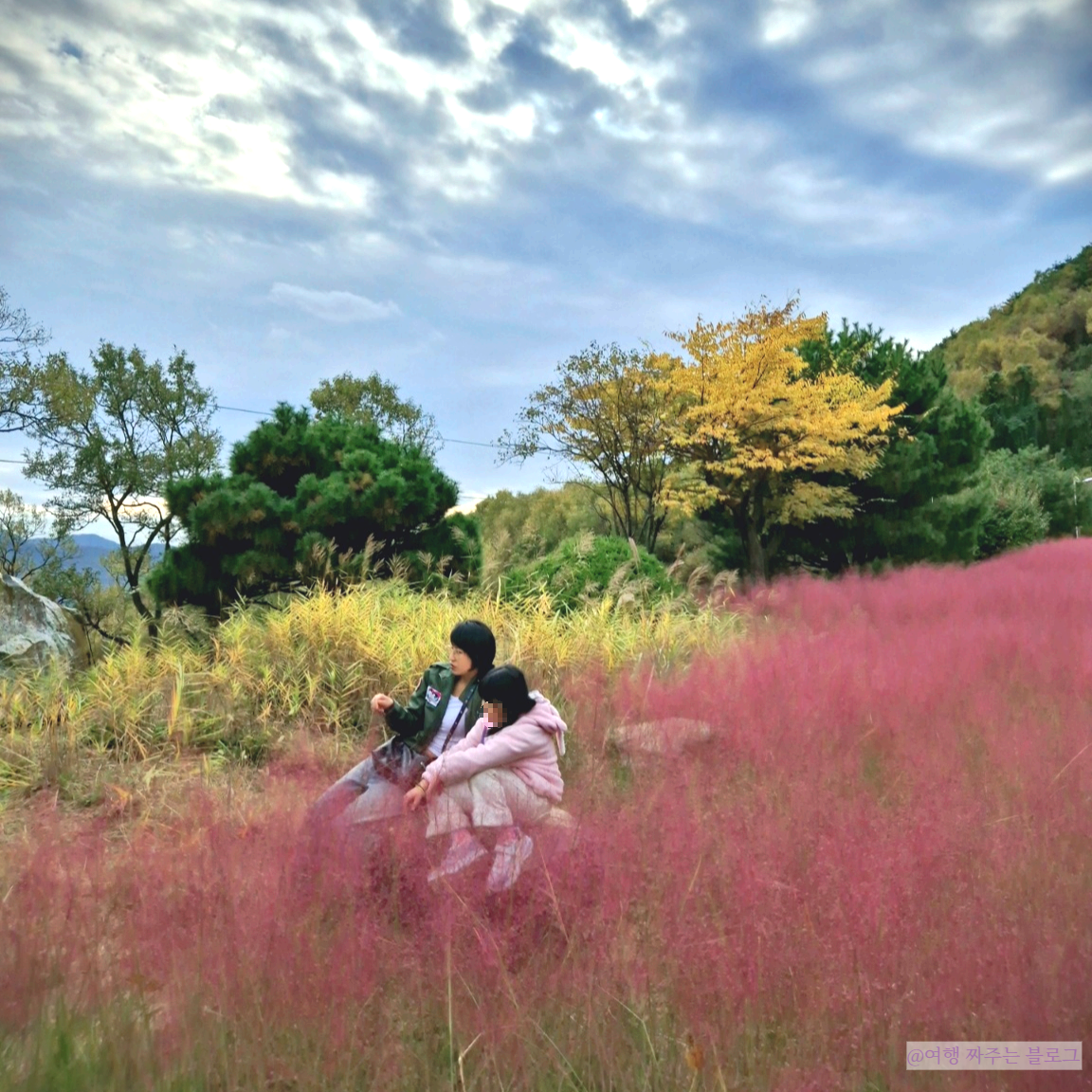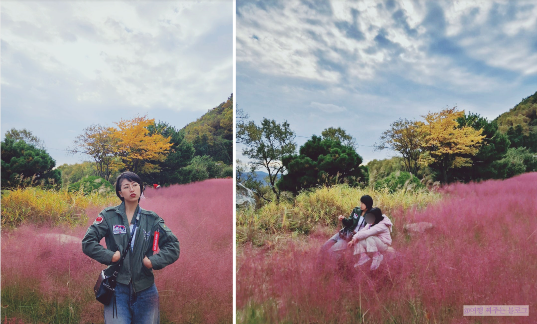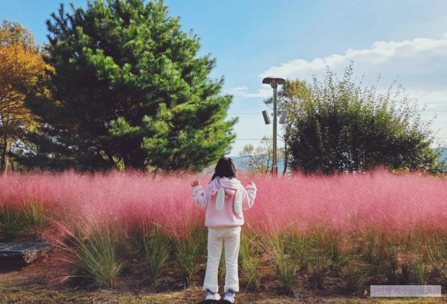 지금 가을 시즌이라 이곳에는 핑크 뮬리 정원이 있어요.