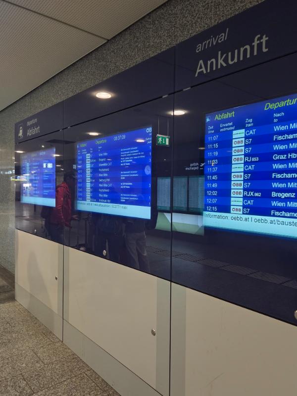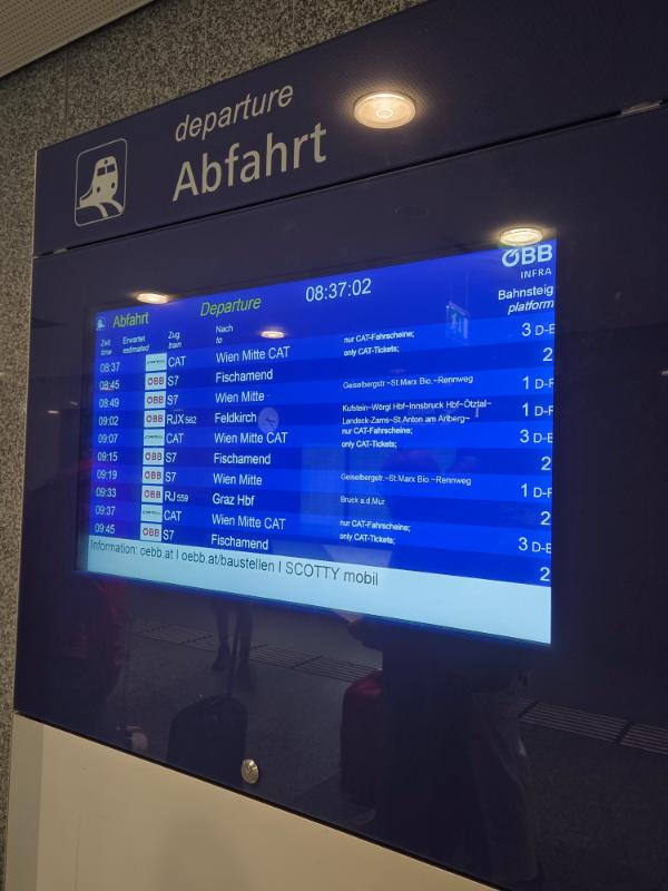 위 사진에서 8시 49분 빈 미떼로 가는 S7은 플랫폼 1 D~F에 정차합니다.