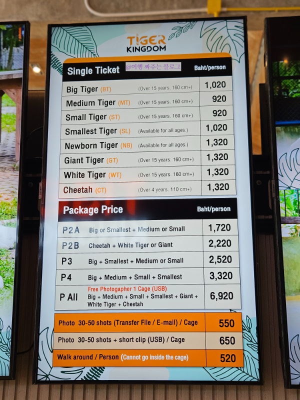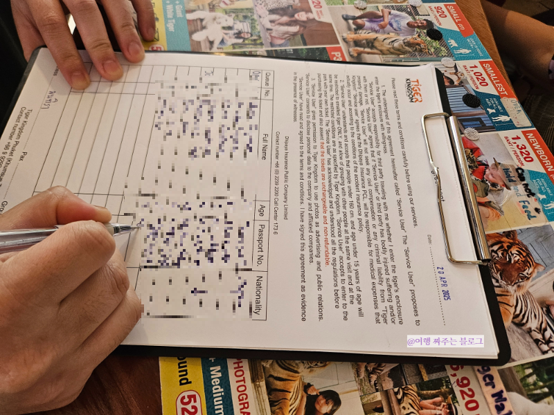 그랩을 타고 타이거 킹덤에 들어올 때 번호표를 끊어줍니다.