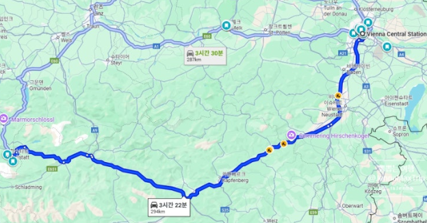 비엔나에서는 차로 3시간 30분 정도 걸려요.