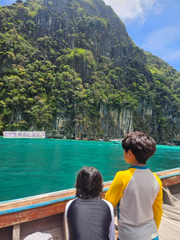 성인 2명과 초등학생 아이 2명, 총 4인 가족이 푸켓 올드타운에 머무르며 하루 일정으로 다녀온 피피섬 투어 후기를 공유합니다.
