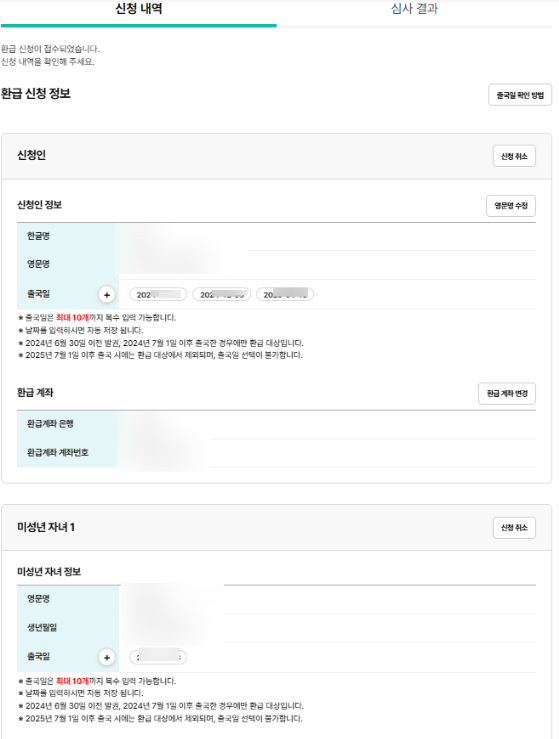 참고로 어린 자녀분 환급을 신청하실 때는 법정대리인이 여권 사본 같은 추가 서류를 준비해야 할 수도 있어요.