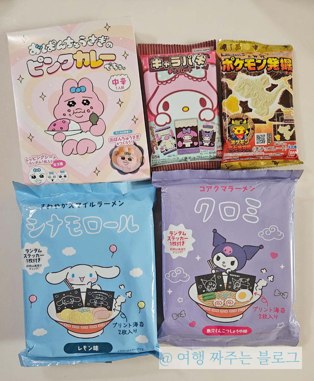 이 그림에서 시나모롤 라면과 쿠로미 라면, 토깽이 카레를 샀습니다.